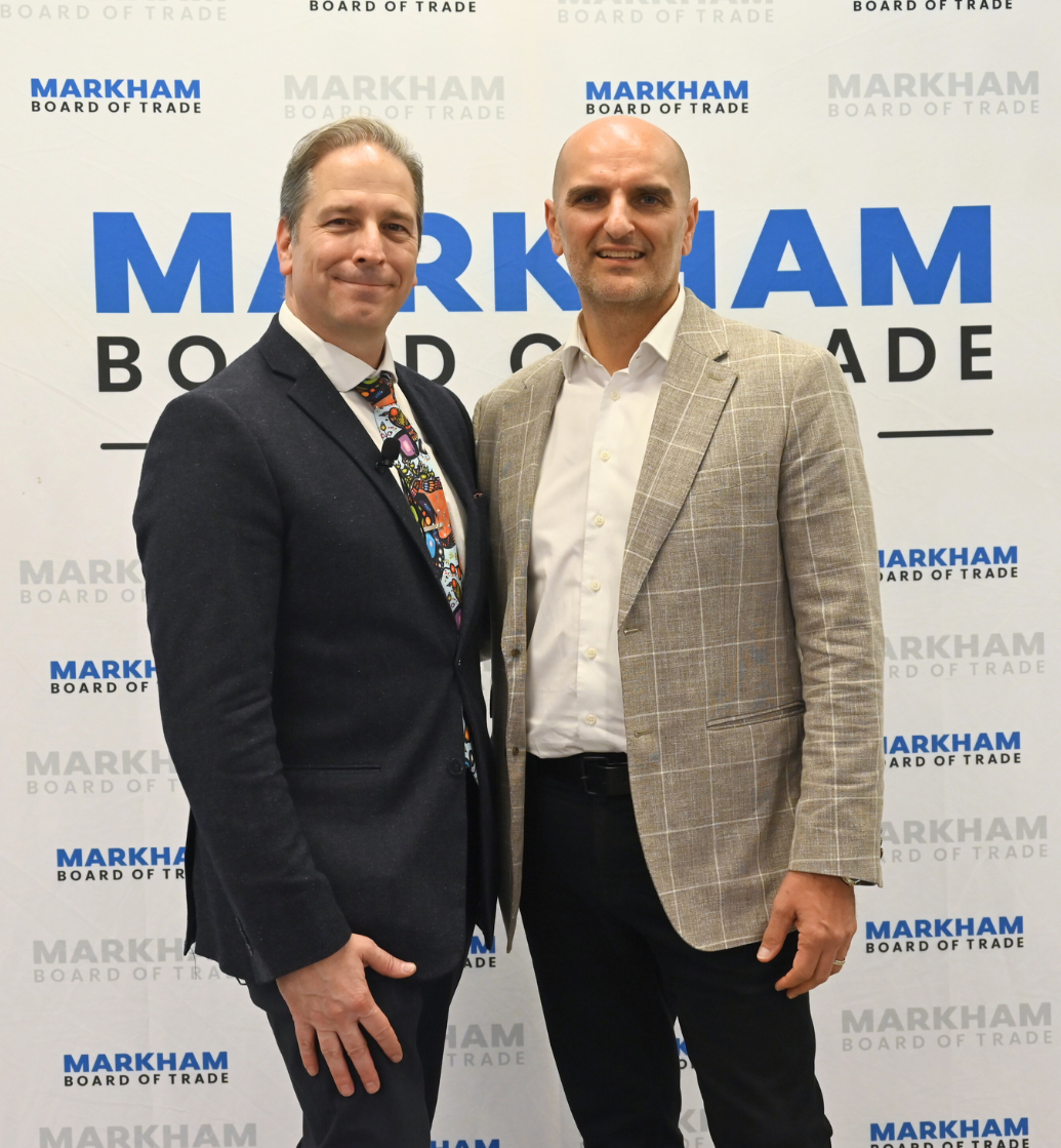 Chris Collucci, President & CEO of Markham Board of Trade, and Markham Mayor Frank Scarpitti stand together, smiling, symbolizing their commitment to supporting local business and community growth.